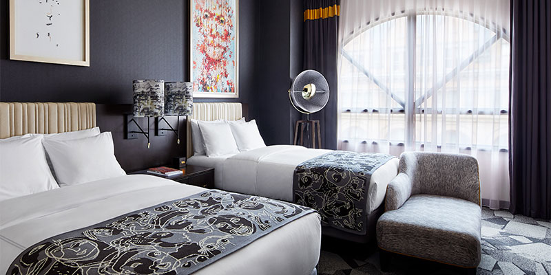 They don’t call it “The Arts Hotel” for nothing. Guests will encounter remarkable art installations all throughout the hotel, including magnificent sculptures, paintings and photographs with a thousand stories to tell. Saint Kate is also home to multiple dedicated gallery spaces with rotating exhibitions managed by an in-house curator. Even some of the guestrooms owe their aesthetic to local artists, who were given license to design and furnish as they please.