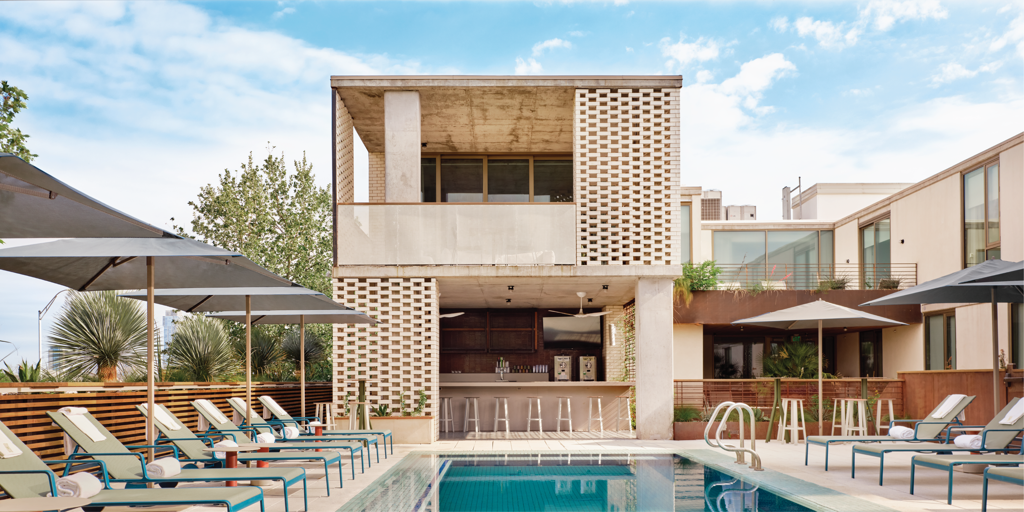 ROOFTOP POOL AND LOUNGE Perched over South Congress Avenue with views of the downtown Austin skyline. Full bar with poolside dining from Café No Sé.