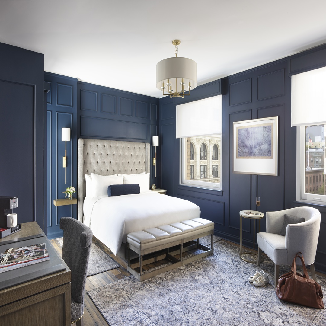 Guest rooms evoke a classic-meets-contemporary sensibility: