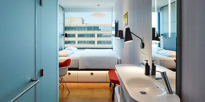 Nine floors and 272 rooms all have citizenM’s ‘affordable luxury’ stamp of approval. There is only one type of room at citizenM – the perfect one. Everything that matters is luxurious: the huge XL king-size bed, ultra-comfortable linen, powerful rain shower, full-size AM and PM shower gels, and superfast free Wi-Fi. There are even intense blackout blinds – perfect for power-napping, whatever time the meeting ends. Each room’s ambience is completely controllable by a MoodPad – an iPad that adjusts everything from the temperature to the TV. On the iPad is citizenM’s exclusive Brainwaves moods – music-and-light compositions scientifically proven to alleviate the common stresses of travel: anxiety, sleeplessness and lack of focus.