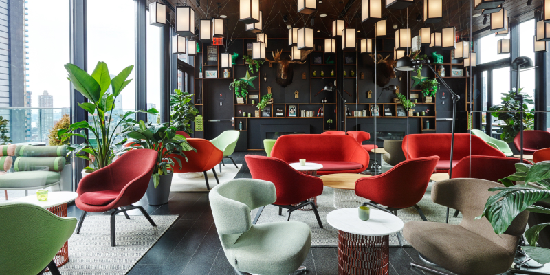 Big meetings don’t need stuffy meeting rooms. They need a citizenM living room with superfast Wi-Fi, iMacs for guest use and more world-class artwork than MOMA. This stylish, modern space is filled with designer Vitra furniture to cozy up in, and inspiring, colorful curios. This is a space for all the team to meet, for email-busting with a cup of Joe, or for watching bustling NYC go by.