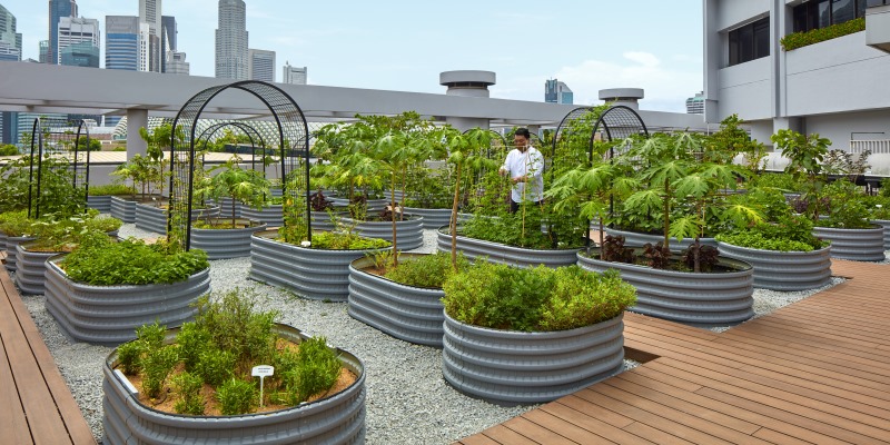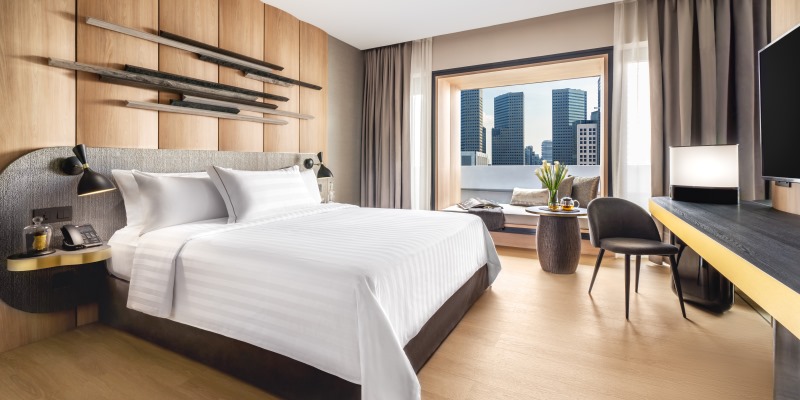 The first ‘garden-in-a-hotel’ in Singapore, PARKROYAL COLLECTION Marina Bay is a 21-story hotel that seamlessly integrates eco-friendliness, well-being, and iconic design, thereby creating a unique guest experience in the bustling heart of the Marina Bay area.