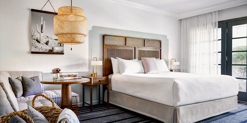 The Scott is a vibrant, Mission-style boutique resort in the heart of Old Town Scottsdale. Bringing together the colors and comforts of old Havana, and the elegant geometry of The Bauhaus, the hotel offers a lush oasis retreat to the middle of the Sonoran Desert with 204 guest rooms and suites and two pools – a sand-bottom swimming pool perfect for families and the main lagoon pool with private cabanas and a pool bar.