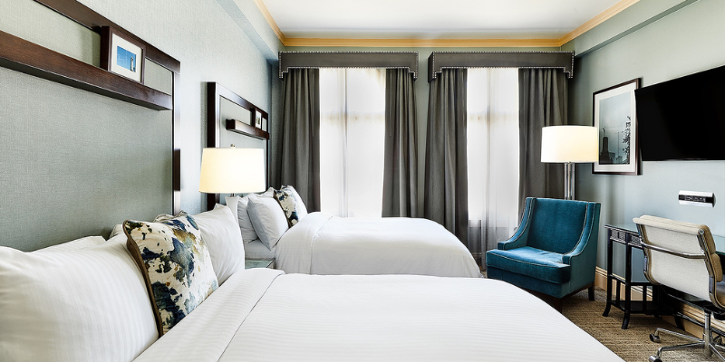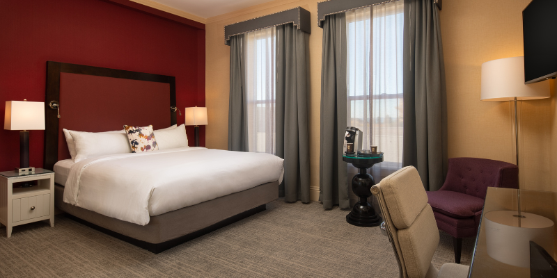 At Hotel Shattuck Plaza all rooms and suites have been recently renovated and boast a reimagined historic feel with all the comforts for the modern traveler. There are four room types to choose from, including the double deluxe, deluxe king, business class and a handful of suites. No two rooms are alike in this historic property, but they all offer complimentary Wi-Fi, flat screen HDTVs, iron/ironing board, hair dryer, in room safe, ergonomic workstations, hypoallergenic pillows, Keurig coffeemakers and spa-like bath amenities. Suites include robes and slippers and included a sleeper sofa in the as well as a partial view looking out to the San Francisco Bay.