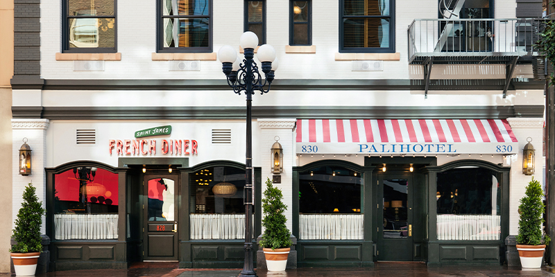 With a prime location in the heart of the Gaslamp Quarter, Palihotel San Diego is the perfect location to discover the city, take meetings with clients, or find respite during a local convention, after catching a game at Petco Park, or seeing a concert at the Shell. Saint James French Diner, located just off the lobby, is an all-day dining room that blends the approachable nature of an American diner with the subtle elegance of a French bistro.