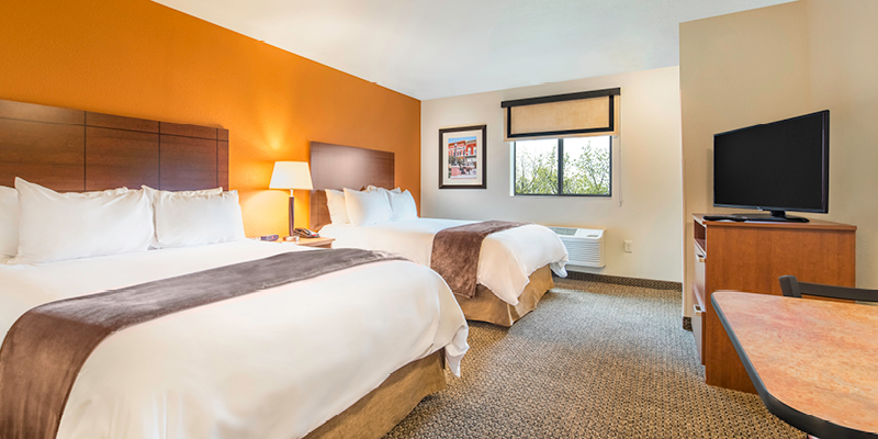All rooms feature microfiber bedding and a variety of soft and firm pillows atop our exclusive My Place Plush pillowtop mattresses! For added convenience, all rooms have a “My Kitchen,” which includes a full-sized refrigerator, a two-burner cook top, coffee maker and microwave. As our guest, you will enjoy premium cable channels on a flat-screen TV, as well as free Wi-Fi and wired internet access. Guests can choose from a variety of options from our Breakfast in Bed program for a delivered breakfast option. Outside the guest room, the hotel offers 24-hour on-site laundry facilities, a business center with computer, a fully stocked My Store with a variety of food and beverage options, and 24-hour complimentary coffee.