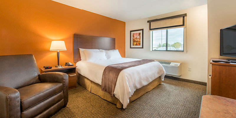 All rooms feature microfiber bedding and a variety of soft and firm pillows atop our exclusive My Place Plush pillowtop mattresses! For added convenience, all rooms have a “My Kitchen,” which includes a full-sized refrigerator, a two-burner cook top, coffee maker and microwave. As our guest, you will enjoy premium cable channels on a flat-screen TV, as well as free Wi-Fi and wired internet access. Guests can choose from a variety of options from our Breakfast in Bed program for a delivered breakfast option. Outside the guest room, the hotel offers 24-hour on-site laundry facilities, a business center with computer, a fully stocked My Store with a variety of food and beverage options, and 24-hour complimentary coffee.