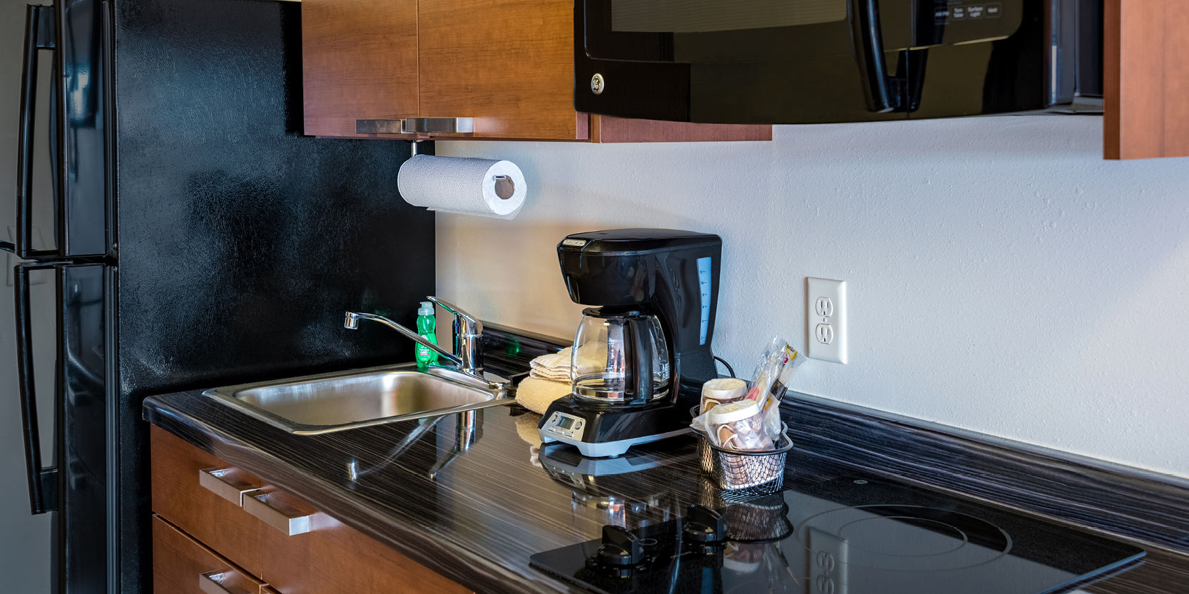 All rooms feature pillow top mattresses, microfiber bedding, and a variety of soft and firm pillows. For added convenience, all rooms have a “My Kitchen,” which includes a full-sized refrigerator, a two-burner cook top, coffee maker and a microwave. As our guest you will enjoy premium cable channels on a flat-screen TV, as well as free Wi-Fi and wired internet access. Guests can choose from a variety of options from our Breakfast in Bed program for a delivered breakfast option. Outside the guest room the hotel offers on-site laundry facilities, a business center with computer, a fully stocked My Store with a variety of food and beverage options, and a twenty-four-hour coffee station.