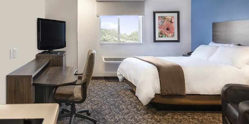 All rooms feature microfiber bedding and a variety of soft and firm pillows atop our exclusive My Place Plush pillowtop mattresses! For added convenience, all rooms have a “My Kitchen,” which includes a full-sized refrigerator, a two-burner cook top, coffee maker and microwave. As our guest, you will enjoy premium cable channels on a flat-screen TV, as well as free Wi-Fi and wired internet access. Guests can choose from a variety of options from our Breakfast in Bed program for a delivered breakfast option. Outside the guest room, the hotel offers 24-hour on-site laundry facilities, a business center with computer, a fully stocked My Store with a variety of food and beverage options, and 24-hour complimentary coffee.