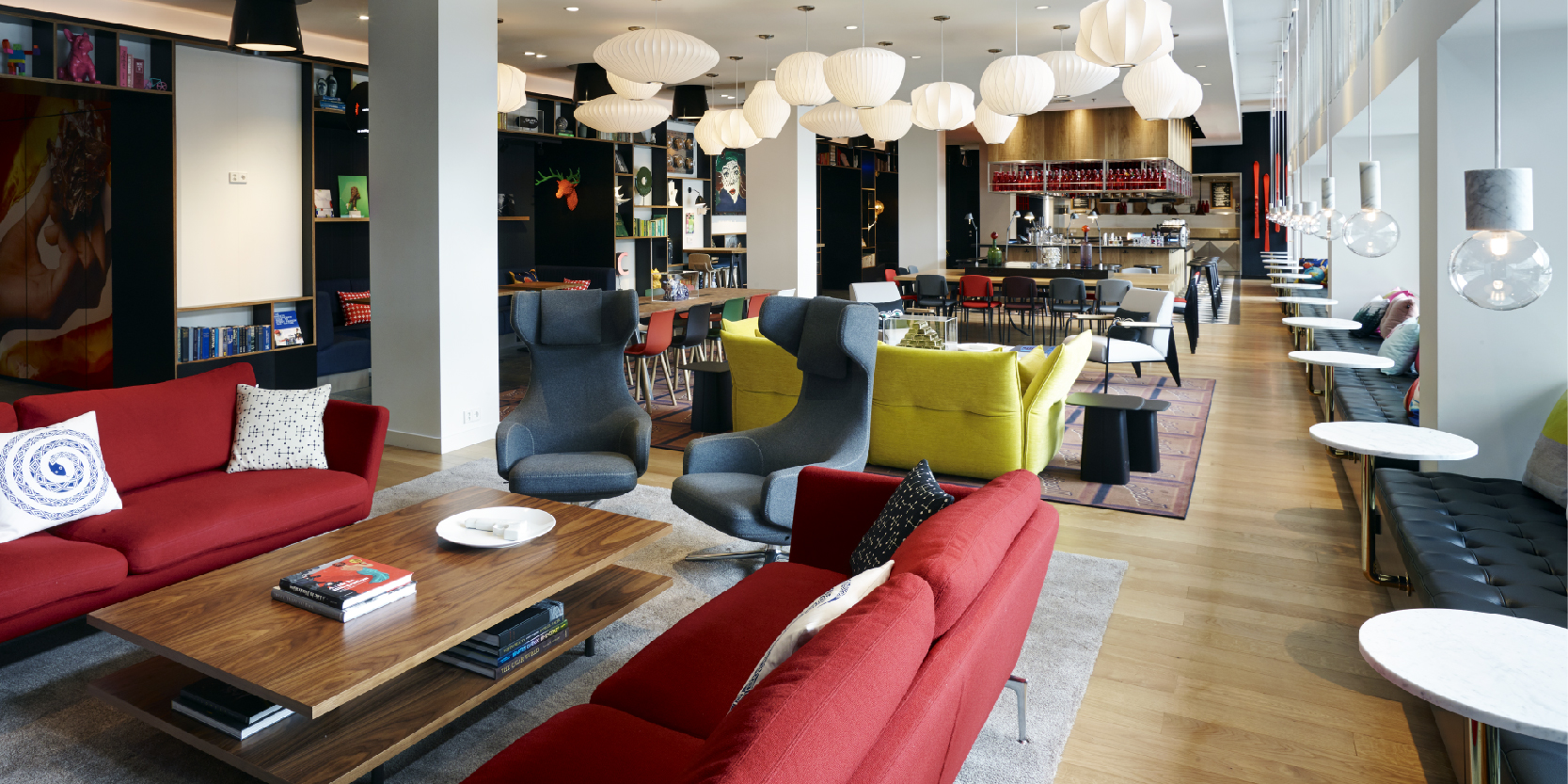 Workspaces just need a little je ne sais quois to get workers in the flow. Our state-of-the-art living room is designed to set ideas in motion. This space is filled with bold Vitra furniture, adjustable lighting and smart TVs that hook up to any laptop. Did we mention our superfast Wi-Fi? It’s everywhere across the hotel, making speedy meetings even easier. There are iMacs for guest use and quiet areas for team briefings or meeting breakout rooms. What better way to be inspired than by statement-making art pieces from artists across the globe? Yes, our walls are filled with them. But this living space is also designed to relax in. We have hundreds of books to choose from or cozy spots for sticking in those headphones and catching up on the latest podcast.