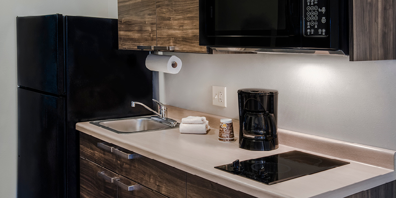 All rooms feature microfiber bedding and a variety of soft and firm pillows atop our exclusive My Place Plush pillowtop mattresses! For added convenience, all rooms have a “My Kitchen,” which includes a full-sized refrigerator, a two-burner cook top, coffee maker and microwave. As our guest, you will enjoy premium cable channels on a flat-screen TV, as well as free Wi-Fi and wired internet access. Guests can choose from a variety of options from our Breakfast in Bed program for a delivered breakfast option. Outside the guest room, the hotel offers 24-hour on-site laundry facilities, a business center with computer, a fully stocked My Store with a variety of food and beverage options, and 24-hour complimentary coffee.
