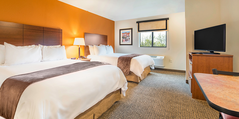 All rooms feature microfiber bedding and a variety of soft and firm pillows atop our exclusive My Place Plush pillowtop mattresses! For added convenience, all rooms have a “My Kitchen,” which includes a full-sized refrigerator, a two-burner cook top, coffee maker and microwave. As our guest, you will enjoy premium cable channels on a flat-screen TV, as well as free Wi-Fi and wired internet access. Guests can choose from a variety of options from our Breakfast in Bed program for a delivered breakfast option. Outside the guest room, the hotel offers 24-hour on-site laundry facilities, a business center with computer, a fully stocked My Store with a variety of food and beverage options, and 24-hour complimentary coffee.