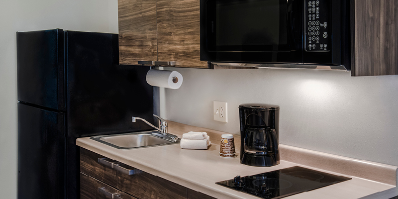 All rooms feature microfiber bedding and a variety of soft and firm pillows atop our exclusive My Place Plush pillowtop mattresses! For added convenience, all rooms have a “My Kitchen,” which includes a full-sized refrigerator, a two-burner cook top, coffee maker and microwave. As our guest, you will enjoy premium cable channels on a flat-screen TV, as well as free Wi-Fi and wired internet access. Guests can choose from a variety of options from our Breakfast in Bed program for a delivered breakfast option. Outside the guest room, the hotel offers 24-hour on-site laundry facilities, a business center with computer, a fully stocked My Store with a variety of food and beverage options, and 24-hour complimentary coffee.
