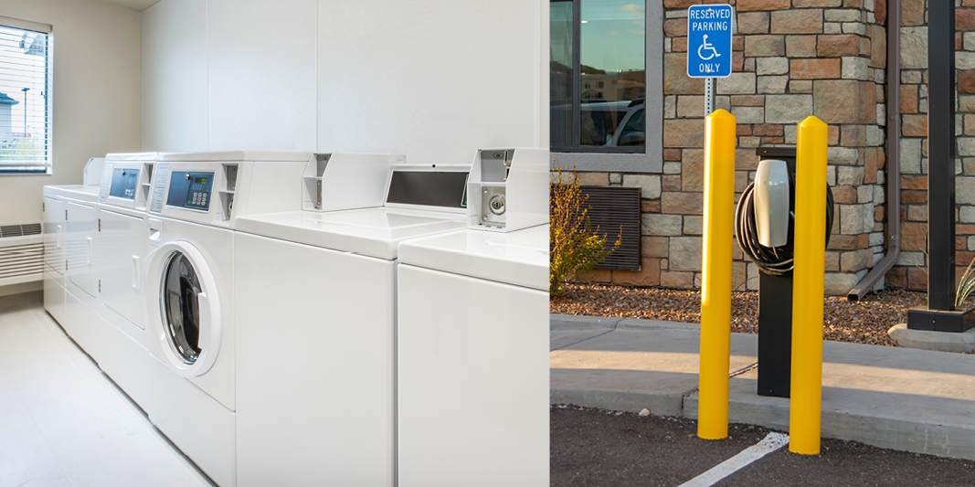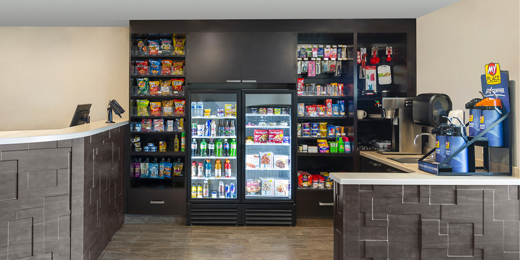 All rooms feature pillow top mattresses, microfiber bedding, and a variety of soft and firm pillows. For added convenience, all rooms have a “My Kitchen,” which includes a full-sized refrigerator, a two-burner cook top, coffee maker and a microwave. As our guest you will enjoy premium cable channels on a flat-screen TV, as well as free Wi-Fi and wired internet access. Guests can choose from a variety of options from our Breakfast in Bed program for a delivered breakfast option. Outside the guest room the hotel offers on-site laundry facilities, a business center with computer, a fully stocked My Store with a variety of food and beverage options, and a twenty-four-hour coffee station.