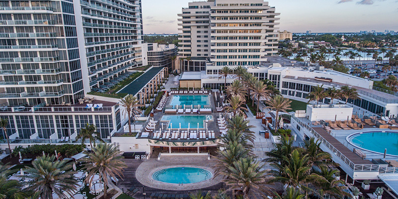 Four sparkling beachfront pools including the exclusive Nobu adults only pool and the expansive 22,000 sq. ft Esencia Wellness Spa with 18 treatment rooms including a beauty salon, fitness center and fashion boutique await you. An exclusive strip of beach invite travelers to unwind in a relaxed tropical setting with Miami Beach’s famous white sand and the Atlantic Ocean’s stunning shades of blue. Stay centrally located in the heart of mid-beach with pulsing nightlife and world-famous cultural attractions just minutes away.
