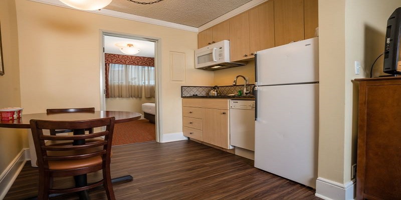 Park Lane Suites and Inn features apartment style suites with separate bedrooms, living room and kitchen. The suites bedroom offers a plush queen bed, two closets, safe, HD television and separate heating control. The layout of the separate living room has a queen sofa sleeper, coffee table, two end tables with lamps, HD television, full size work desk with lamp. The kitchen provides a two burner stovetop, full size refrigerator and microwave, coffee maker, toaster, tea kettle and fully stocked with cookware, utensils, plateware, glassware, silverware and everything you need to prepare a delicious meal. Park Lane Suites and Inn offers free Wi-Fi, free parking, 24-hour front desk and cookies, coffee, tea and fresh fruit in our lobby.