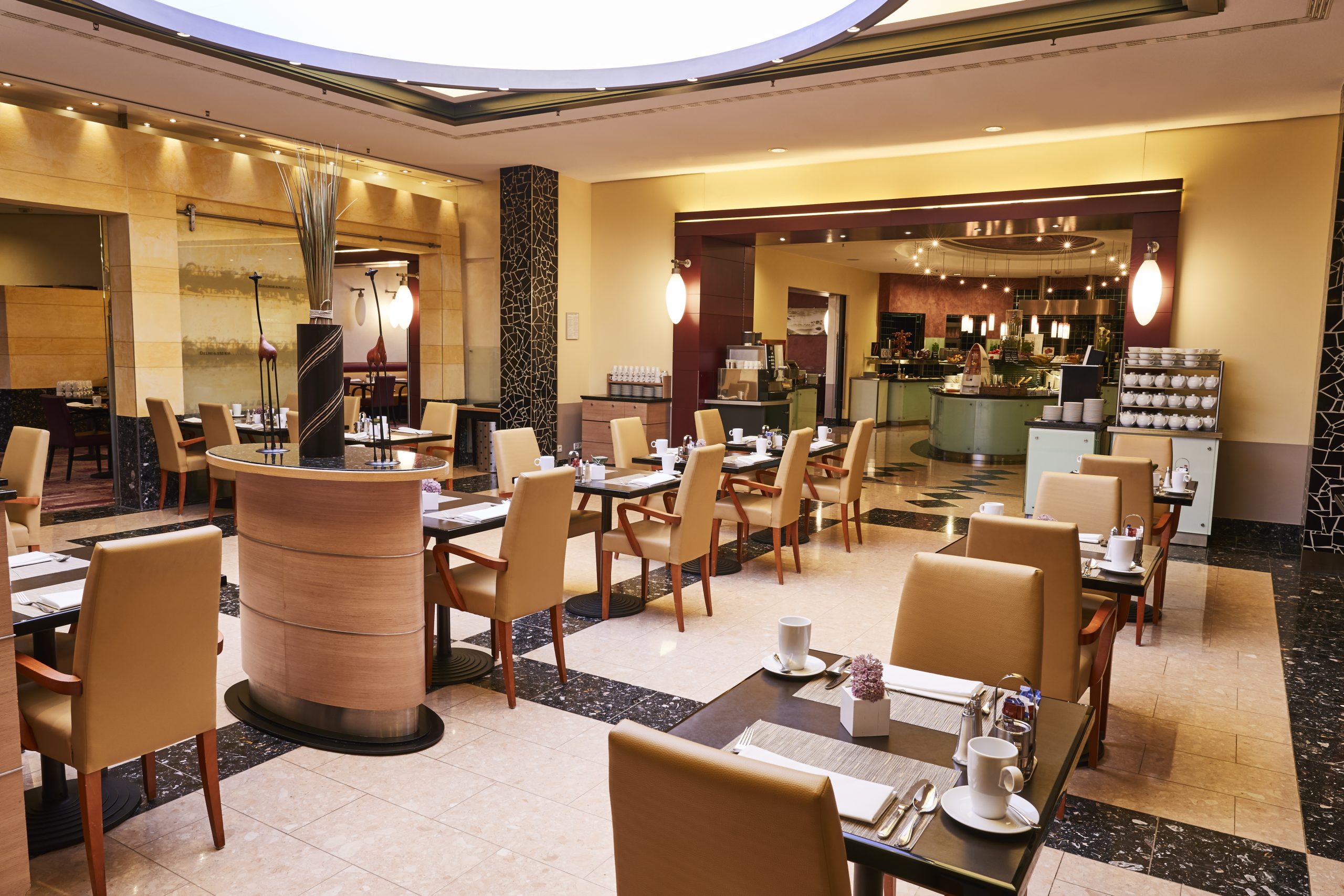 Only about an 1 km away from the airport, the Steigenberger Airport Hotel, Frankfurt is the top address for business events. You can easily reach the city center (approx. 11 km away) by public transportation.