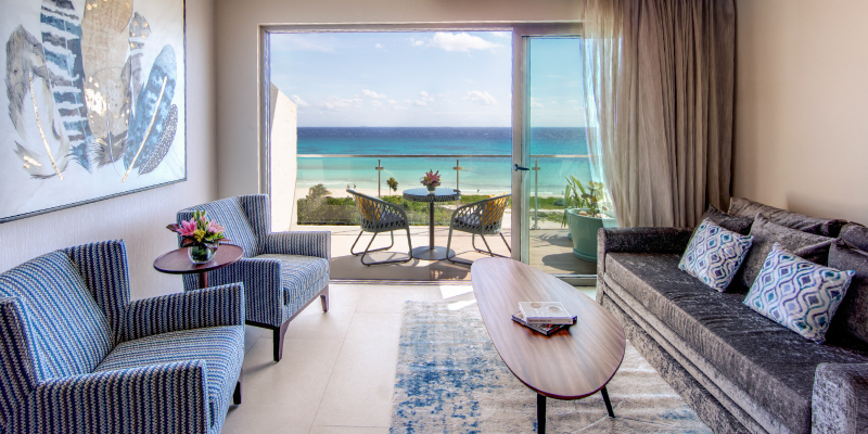 Stay in the comfort of a spacious family suite with sweeping views of the Caribbean