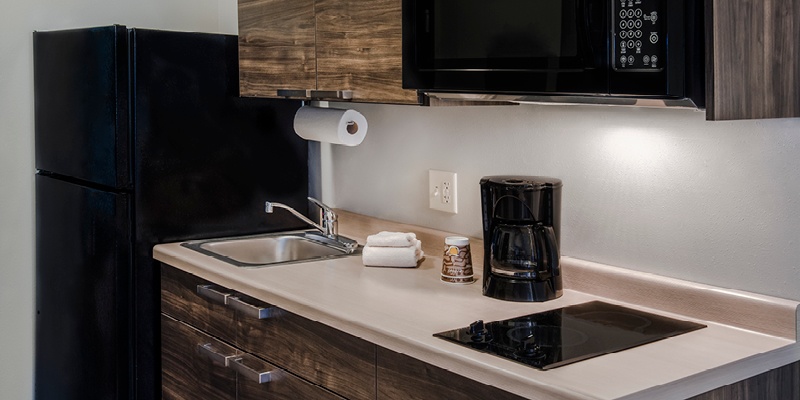 Rooms feature pillow top mattresses, microfiber bedding, and a variety of soft and firm pillows. For added convenience, all rooms have a “My Kitchen,” which includes a full-sized refrigerator, a two-burner cook top, and a microwave. Guests can choose from a variety of options from our Breakfast-in-Bed program for a delivered breakfast option. Outside the guest room the hotel offers onsite laundry facilities, a fully stocked My Store, and a twenty-four-hour coffee station.