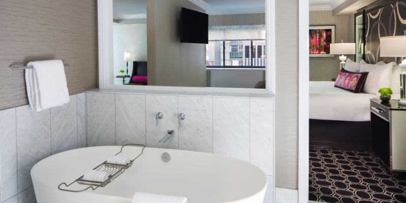 Capturing the excitement of New York City, The Muse has a prime location in the heart of Midtown Manhattan, a breath away from Times Square’s vibrant energy, Broadway’s pinnacle performances, world-class museums, culturally rich dining, and iconic landmarks that define our extraordinary city. Stay like a local with our team’s savvy insight into the city’s hidden gems, must-have experiences, and insider access. Thoughtfully curated with fresh artwork and casually elegant furnishings, venture into our welcoming lobby and settle in an atmosphere that sparks creativity and connection. A haven of comfort and sophistication, our 200 pet-friendly guest rooms and suites blend upscale amenities with contemporary flair – dramatic black and white tones with pops of color, artistic nods to Broadway legends, workstations, and ample space to unwind. These seamlessly transition into spa-inspired bathrooms adorned with Carrara marble, luxurious walk-in glass showers, and amenities provided by Apotheke. Select rooms boast private cityscape balconies to elevate your stay or host intimate gatherings. Maintain your productivity and routine in our well-appointed business and fitness centers, available 24 hours.